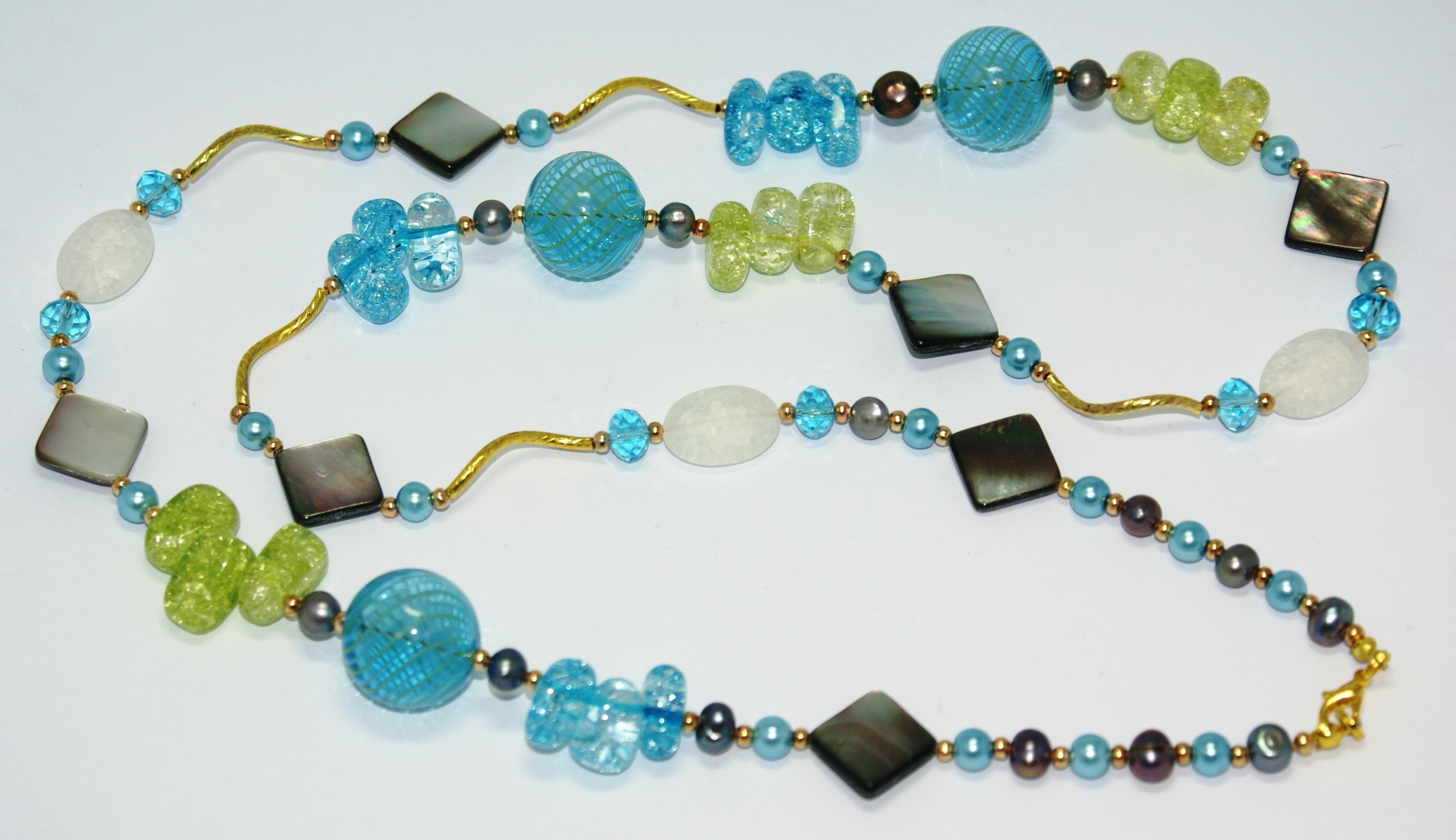 Состав: муранское стекло, жемчуг, перламутр, кварц