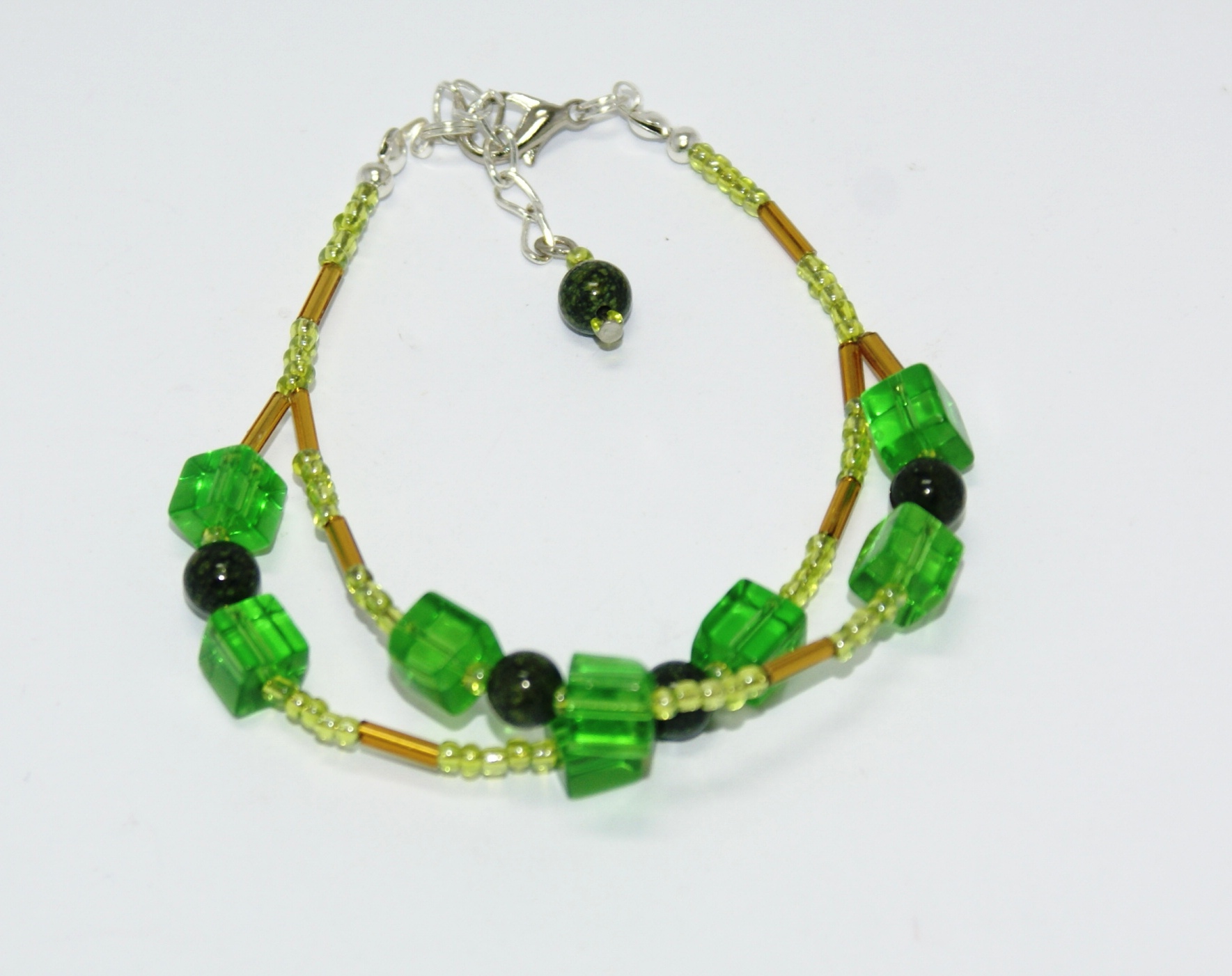 Состав: змеевик, акриловые бусины, бисер, стеклярус