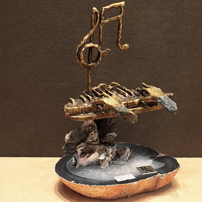 Статуэтка "Фортепьяно" (агат, бронза, хрусталь)