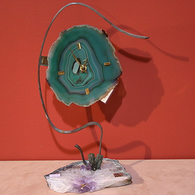 Часы. Состав: агат, сердолик, бронза, подставка - аметист