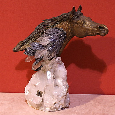 Статуэтка "Голова коня" бронза, подставка-хрусталь