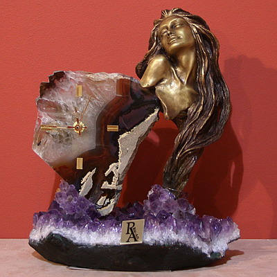 Статуэтка "Виолетта" (девушка+часы)бронза, аметист