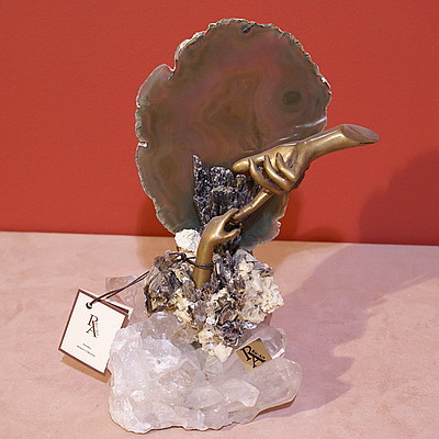Статуэтка "Солидарность" - бронза, слюда на подставке из аметиста.