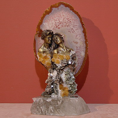Бронза, слюда, сердолик. Подставка - дымчатый хрусталь.