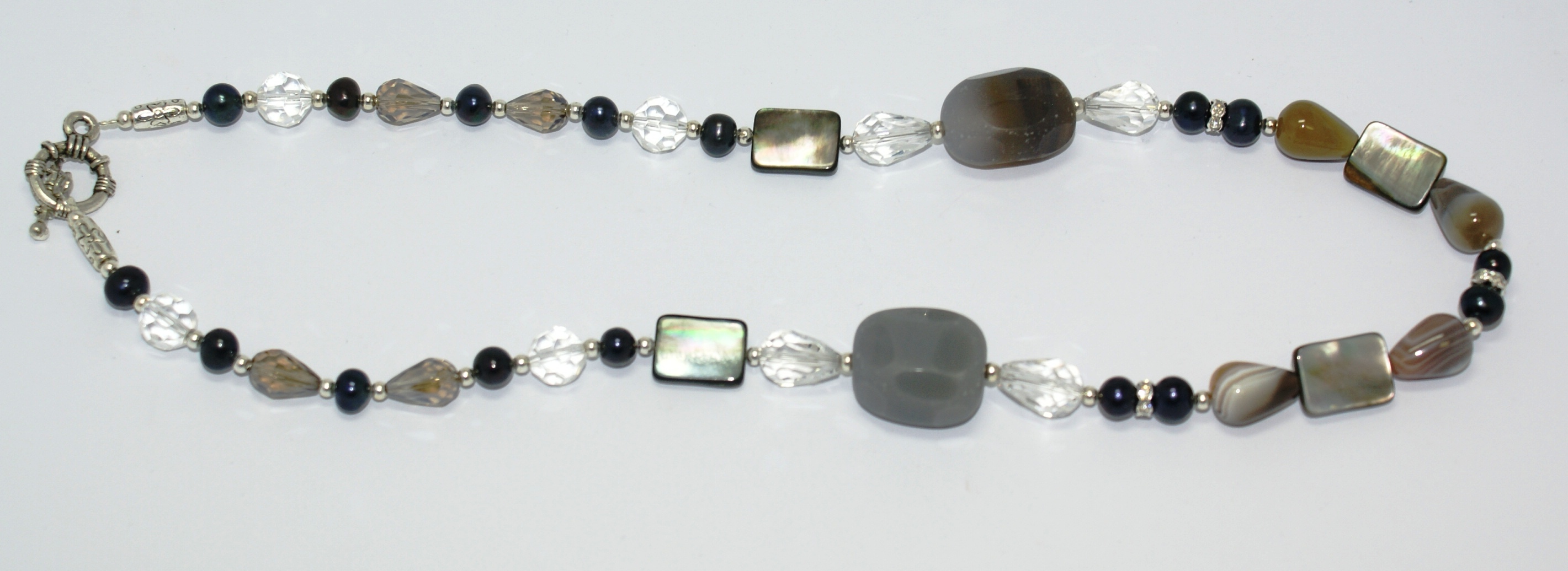 Состав: Бразильский агат, перламутр, жемчуг, хрусталь, стразы