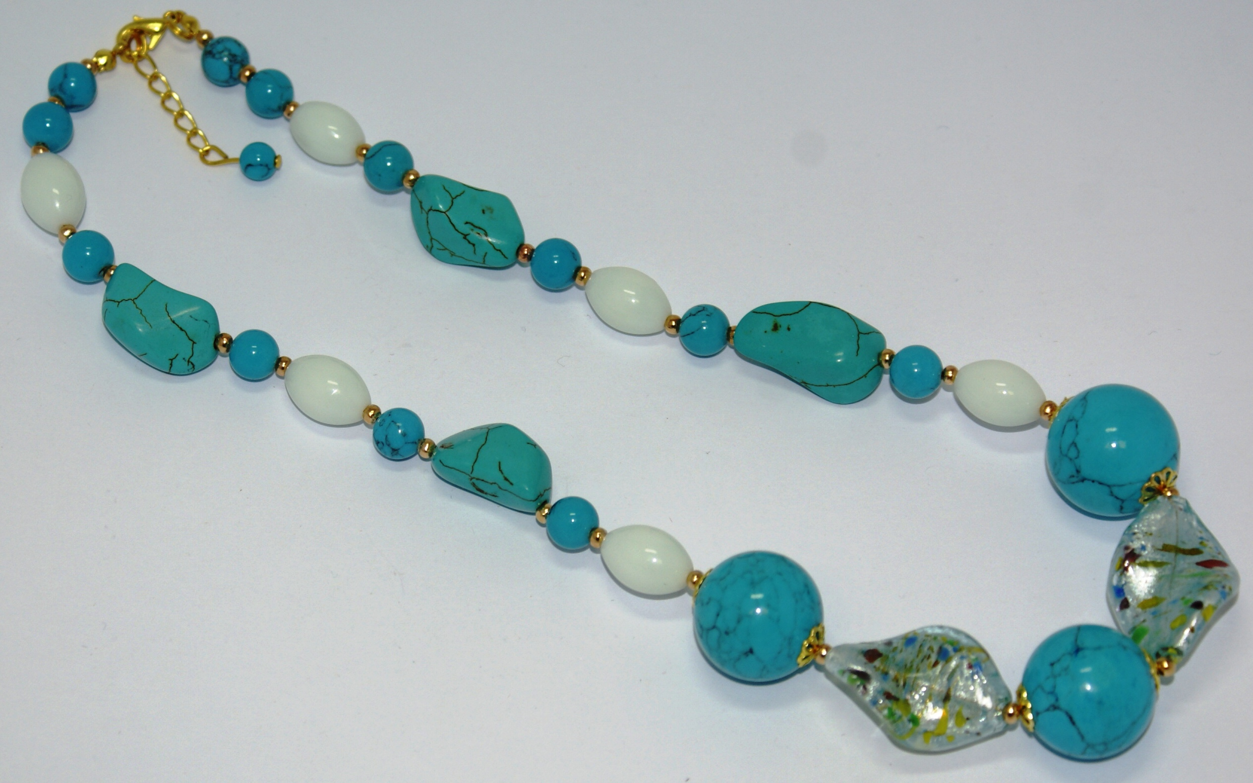 Состав: бирюза, муранское стекло, белый агат