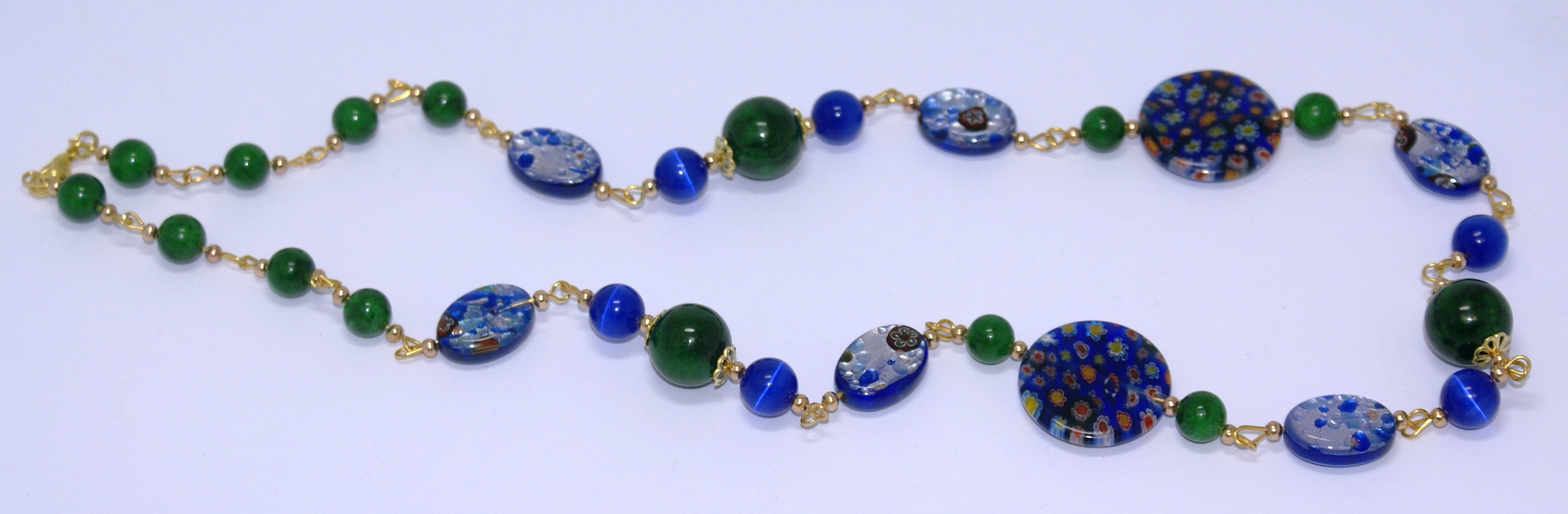 Состав: малахит, муранское стекло, "кошачий глаз" (штифт)