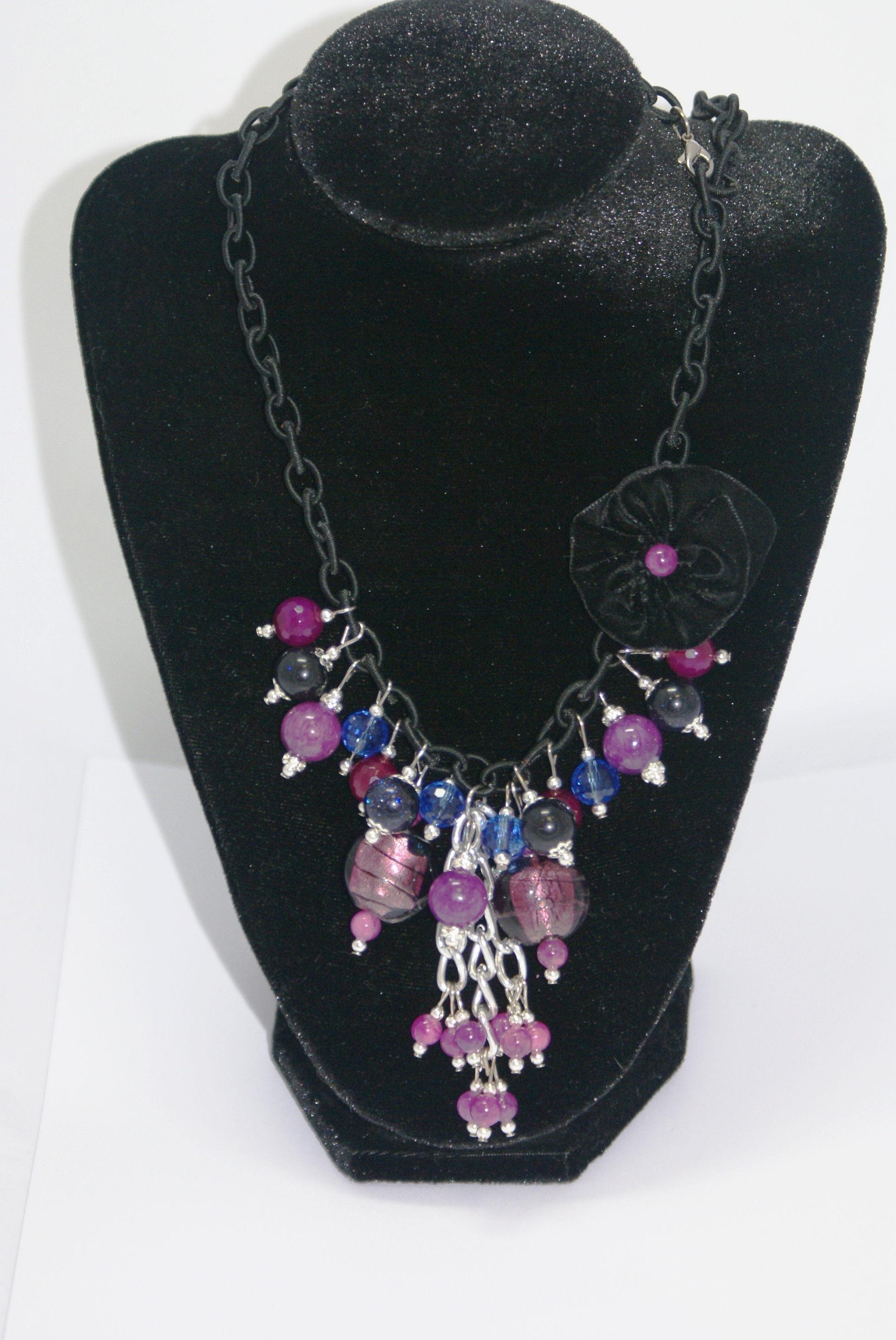 Состав: цепочка текстиль, агат, синий авантюрин, чешское стекло, муранское стекло, стразы